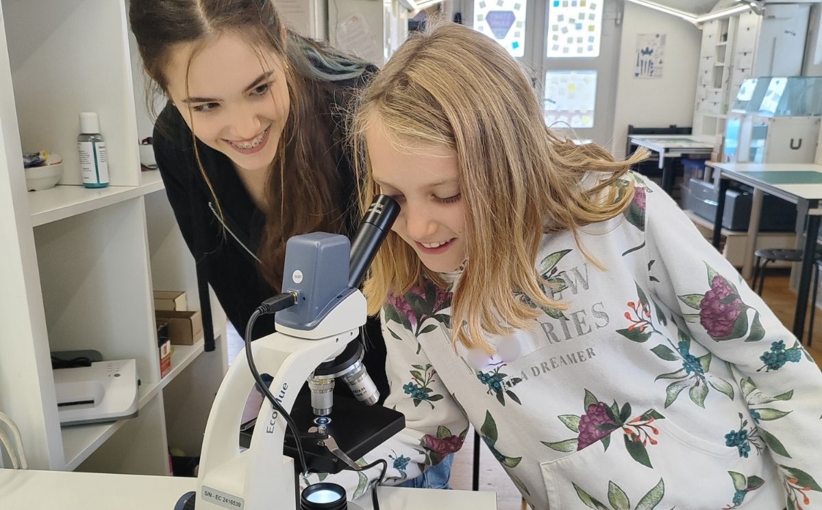 Am Nachmittag machen sich die Nachwuchsforscherinnen auf die Suche nach besonderen Zeitgenossen. Was heisst hier Zeitgenossen? Sie sind doppelt so alt wie die ältesten Dinosaurier und leben immer noch! Die sogenannten Bärtierchen sind wahre Überlebenskünstler: Sie stecken sowohl eisige Minustemperaturen wie auch extreme Hitze weg. Deshalb sind sie für die Weltraummedizin so spannend. Damit die Teilnehmerinnen aber die kleinen drolligen Kreaturen zu Gesicht bekommen, machen sie sich mit dem Mikroskop vertraut. Dabei können sie entdecken, dass sich eine neue erstaunliche Welt auftut, wenn sie auch andere Materialien unters Mikroskop legen.